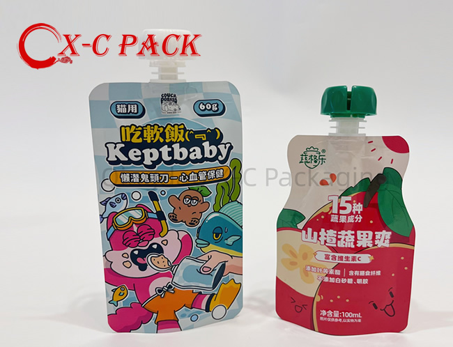 Our spout stand-up bag combines packaging convenience with branding. Made from a high-barrier composite material, the pouch ensures the freshness and safety of its contents. Its stable, self-supporting bottom structure facilitates shelf display, while the precision-fitted spout at the top allows for instant opening and consumption, allowing for multiple capping and reuse. It's widely suitable for packaging liquid and semi-liquid foods such as juice, yogurt, jelly, and condiments.
